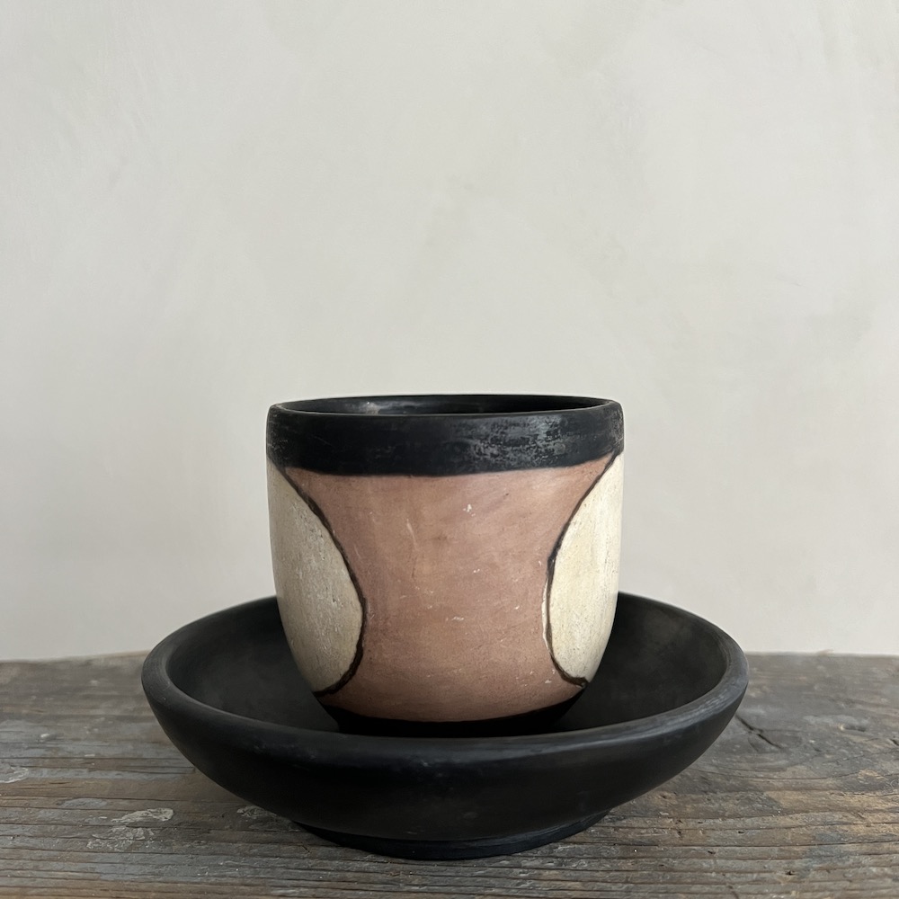 Handtrown clay cup with hand painted circle. Made in Mukono, Uganda and crafted by local artisans and craftspeople, celebrating ancient traditions passed down from generation to generation.